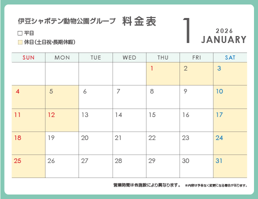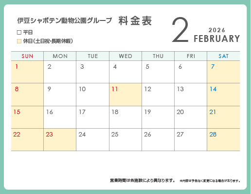 団体のご予約につきましては、伊豆シャボテン動物公園グループ予約センターまでご連絡ください。