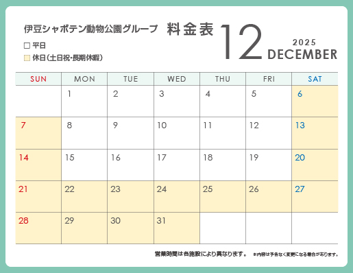 • ※小学生以下のお子様のご入園は、必ず保護者同伴でお願いいたします。